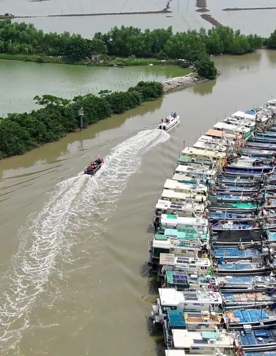 海综执法人员巡查横山渔港,劝导船上人员上岸避风。